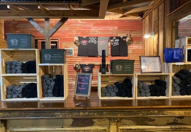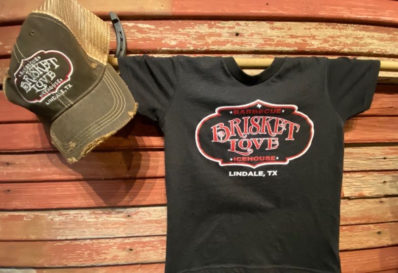 Brisket Love merchandise is available for purchase at the restaurant. Come by or contact us for prices, sizing, and availability 903-881-5725.