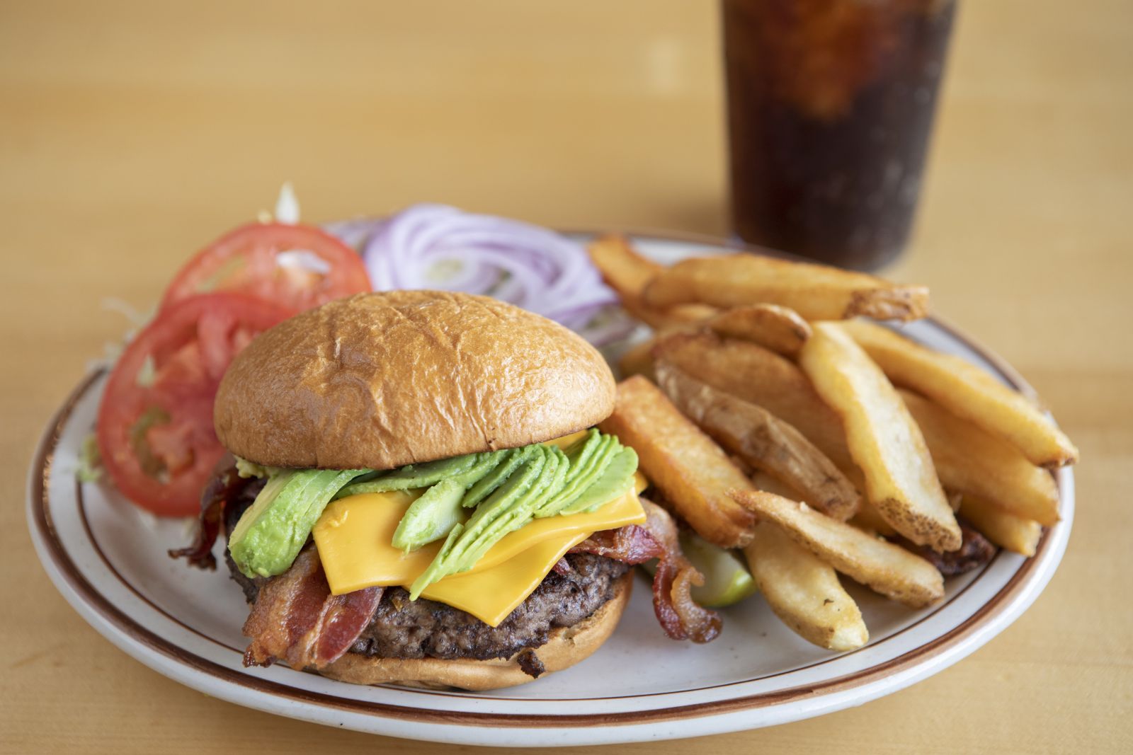 Broiled 1/2 lb. choice Angus ground beef served on a toasted bun with your choice of Swiss, cheddar, Jack or American cheese.