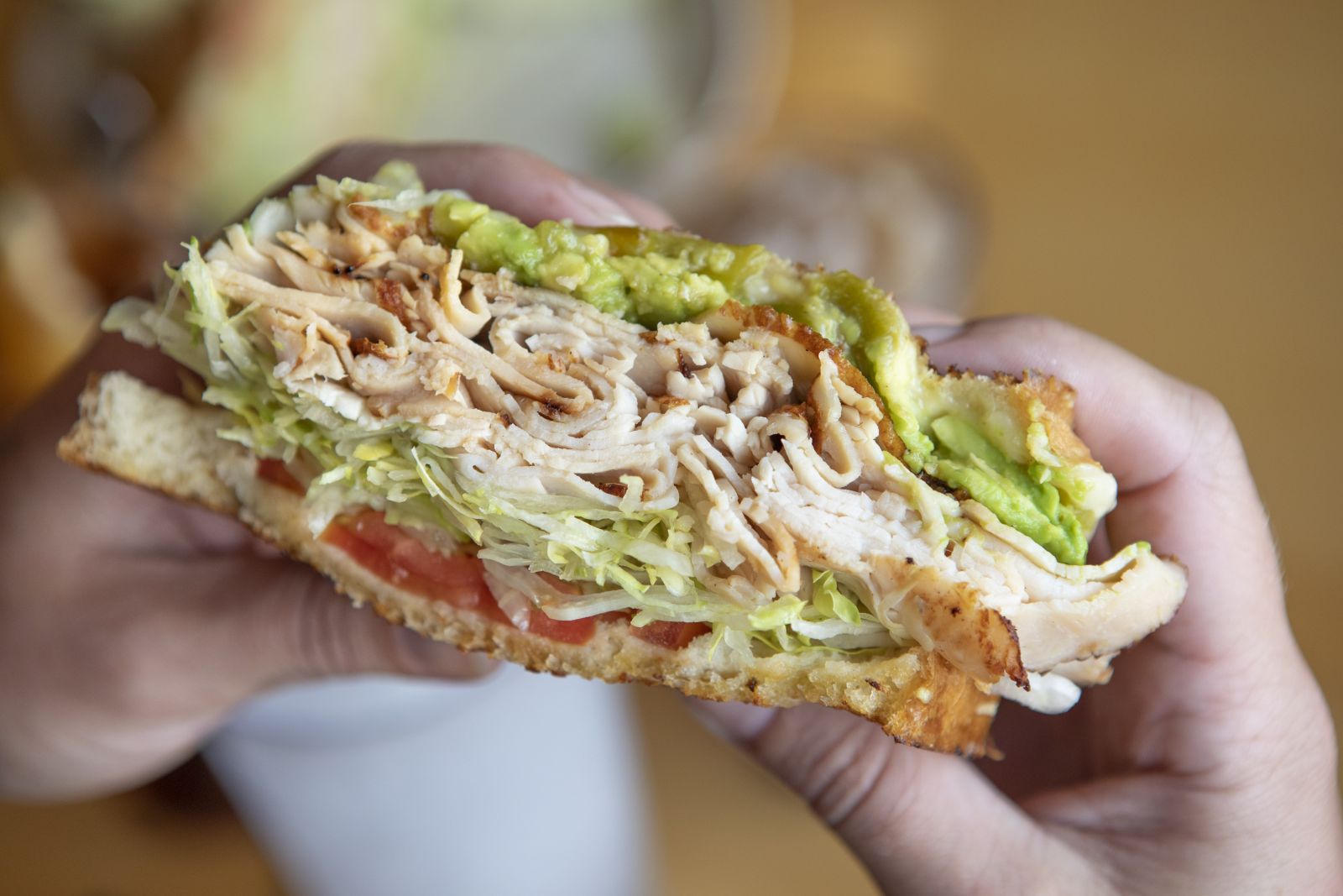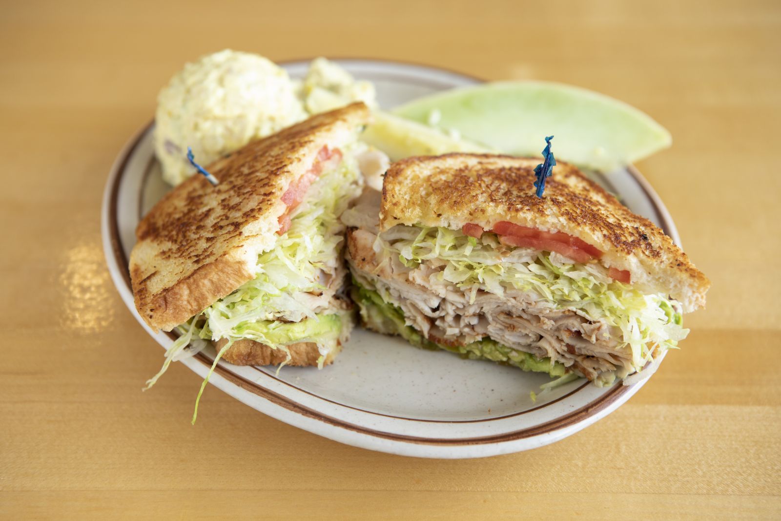 Sliced breast of turkey, avocado, and green chile, topped with Jack cheese,